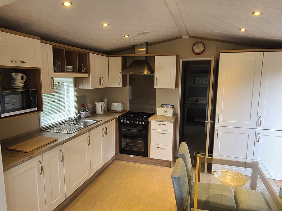 This beautiful 2017 Pemberton Marlow, has a very modern open plan Kitchen / Living room and Dining area, with a lovely view of our Willow lake. With 2 bedrooms with ample storage, the main bedroom does have an en-suite toilet. Outside this caravan benefits from having its own fishing swim and platform and is situated on a good sized plot with private garden. Viewing is highly recommended. Bh&hpa licence agreement to 04/04/2037